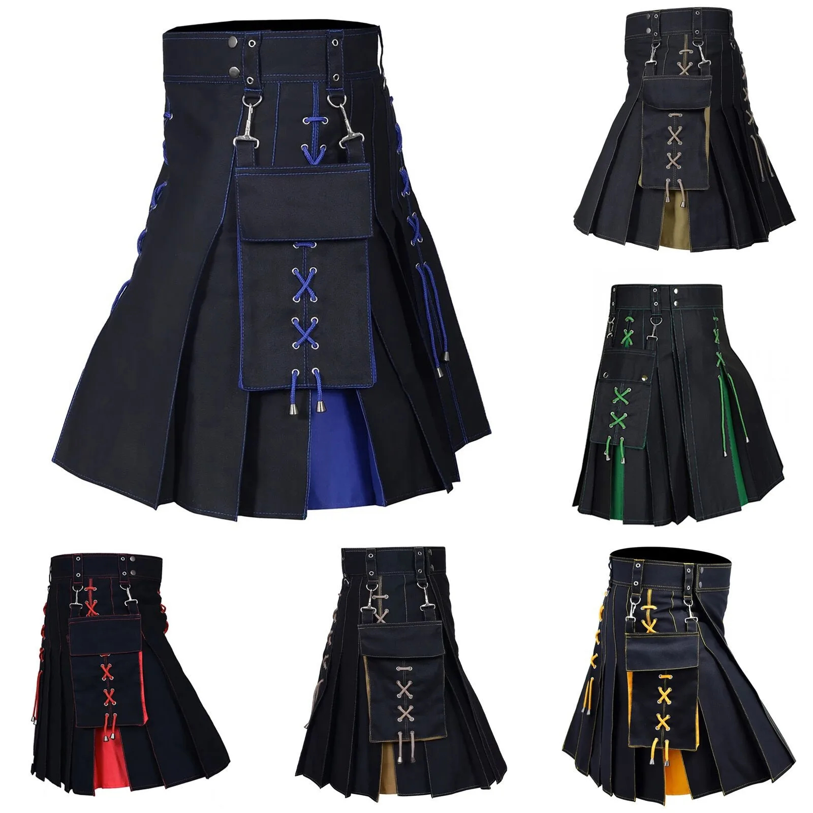 Cosplay Punk Pleated Skirt Men’s Gothic Leather Belt Medieval Roman