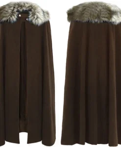 This Medieval Viking Cloak with a luxurious faux fur collar is designed for the ultimate blend of style, warmth, and historical authenticity. Perfect for those seeking a dramatic look for cosplay or reenactment, this cloak is an ideal choice for colder events. Available in a variety of timeless colors including gray, brown, black, blue, and navy, it captures the rugged essence of Viking and medieval aesthetics.