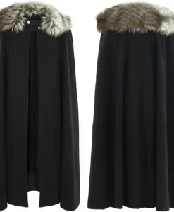 - Design: Full-length cloak with a clasp closure and a fur-lined collar for added warmth and style.