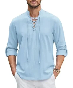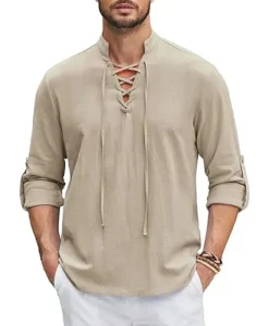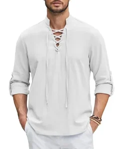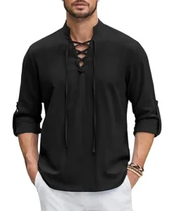 This Renaissance Pirate Medieval Viking Shirt is made from a comfortable cotton and linen blend, perfect for those looking to capture an authentic, timeless look. The fabric provides breathability and comfort, making it ideal for various settings, whether it’s for cosplay, themed events, or casual, daily wear.