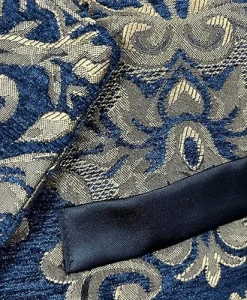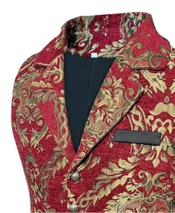 - Design: Slim fit with single-breasted button closure and decorative pattern