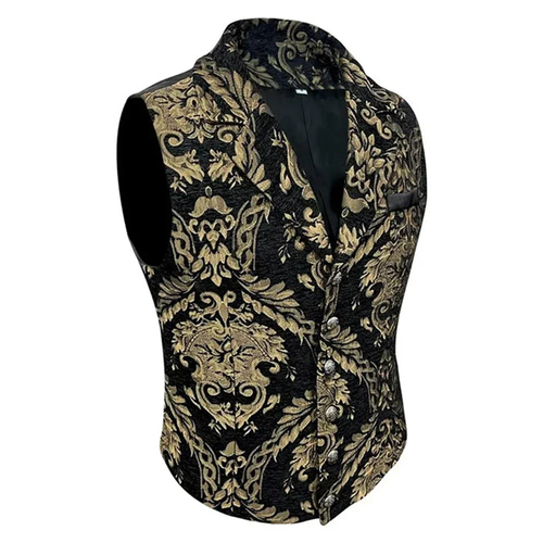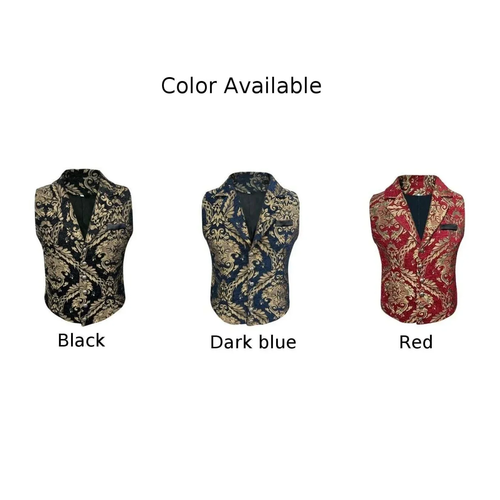 Step up your style with this Men’s Slim Fit Gothic Steampunk Waistcoat, featuring an elegant decorative pattern that adds a sophisticated touch to any outfit. Perfect for formal occasions such as weddings, business events, or smart-casual outings, this sleeveless waistcoat is designed with a single-breasted front and a lapel neckline. Made from high-quality polyester with slight stretch, this waistcoat is available in black, red, and dark blue, making it a versatile addition to your wardrobe. Its slim fit and stylish design ensure you’ll make a statement at any event.
