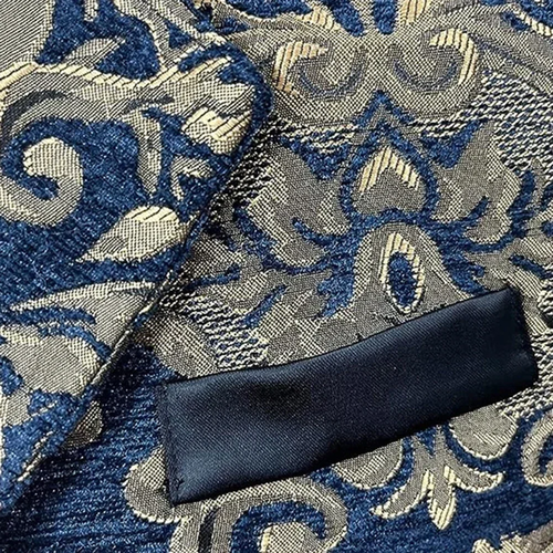 - Design: Slim fit with single-breasted button closure and decorative pattern