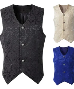 Elevate your wardrobe with this elegant Men’s Victorian Steampunk Gothic Brocade Vest Waistcoat, perfect for a variety of occasions. Crafted from jacquard fabric with a breathable polyester and cotton blend, this vest features a classic V-neck design, 3-button front, and sleeveless cut, making it a stylish addition to any steampunk or Victorian outfit. Ideal for stage performances, Halloween, cosplay, or weddings, this waistcoat will make you the center of attention at any event.