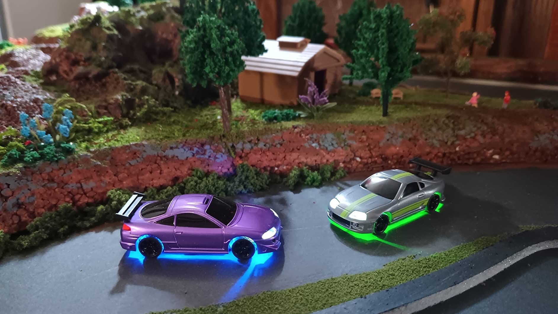 These miniature cars are surprisingly sturdy for being plastic-made. The speed of the car is impressive, and the controller offers extensive features, including adjustable maximum speed and responsive steering without delay. The car also includes transparent body kits for customization, although the existing paintwork is highly detailed, complete with functioning taillights and headlights. I was so delighted with this little RC car that I ended up buying a second one!
