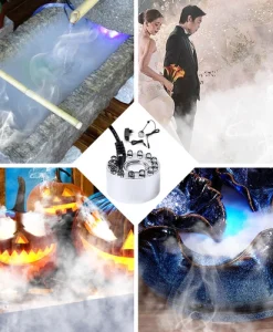 Mist maker with 12 LED lights, Color Changing rotation create fantastic party atmosphere. Mini Fog Machine bring you a surprising effect for your Easter, Christmas, Halloween, and other holiday decoration.