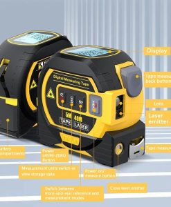 Introducing the Multi-Function Laser Distance Meter, an indispensable tool designed to cater to a wide array of measurement needs. Perfect for professionals and DIY enthusiasts alike, this device combines the precision of a laser rangefinder with the convenience of a traditional 5m tape measure and the utility of laser cross-marking. Whether you’re working on road engineering, housing, construction, or any other project requiring precise measurements, this tool is your go-to solution.