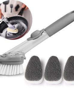 Our kitchen scrubber stands out with its unique refillable liquid soap dispenser integrated into the handle, ensuring a continuous flow of cleaning solution directly to your surfaces. This feature not only saves time but also ensures a more effective and hygienic cleaning process. Whether it’s stubborn food residue or everyday dirt, this brush is up to the task.