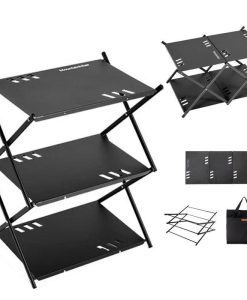 Imagine a camping experience where convenience meets style. Our shelf is best used for outdoor dining, barbecues, and as a utility rack during your outdoor adventures. It’s the ideal solution for keeping your space organized and clutter-free. The folding design means it’s easy to transport and set up, making it perfect for spontaneous outings or planned events alike.