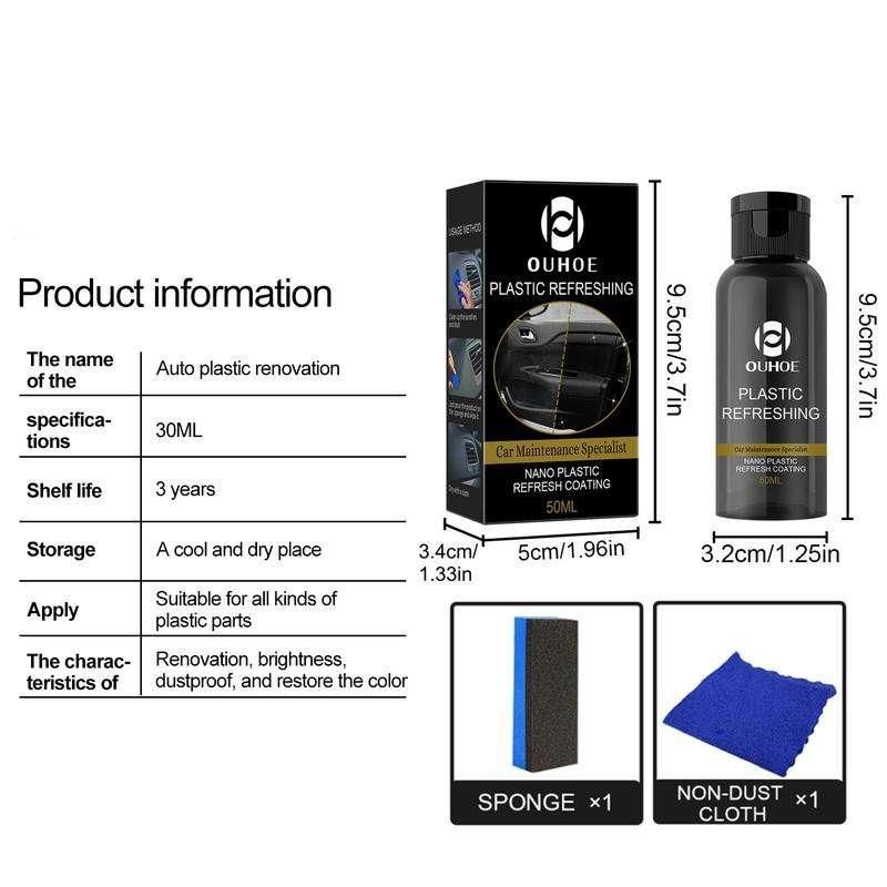 What’s Included in Your Package: Your purchase includes 1 bottle of our Car Plastic Plating Refurbishing Agent, along with 1 high-quality towel and 1 sponge for easy application.