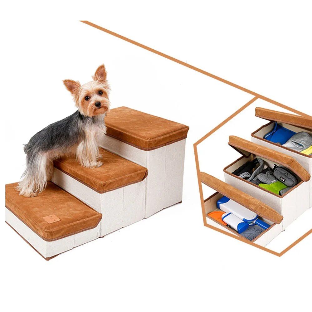 Elevate your furry friend’s comfort and independence with our Multi-Purpose Dog Steps with Storage. Perfect for small dogs and cats, this versatile piece not only assists your pet in reaching their favorite spots but also serves as a convenient storage solution. With its soft flannelette and high-elastic sponge, every step promises a gentle touch to your pet’s paws, ensuring a comfortable and safe climb.