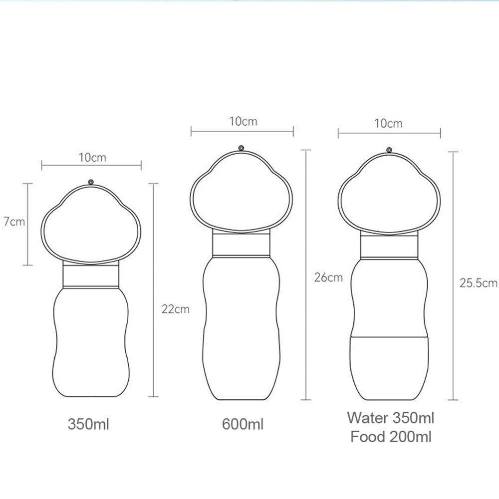 Our pet water bottle is crafted from high-quality, safe, and durable plastic, ensuring longevity and reliability. It comes in three eye-catching colors: Purple, White, and Yellow, making it a stylish addition to your pet supplies. Available in various sizes – 350ml, 600ml, and a dual 350ml water + 200ml food option – it’s suitable for dogs and cats of all sizes, from Chihuahuas to German Shepherds.