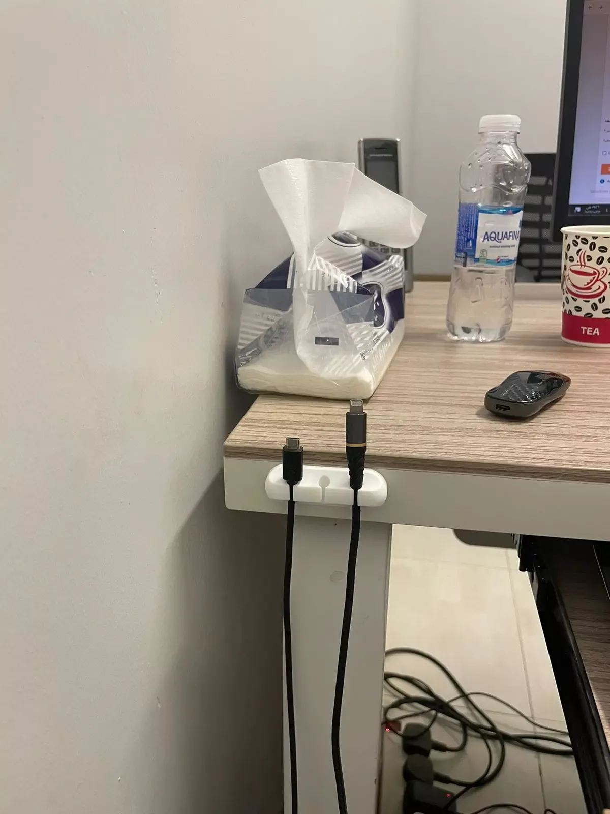 This is a great addition to any desk. It keeps cables from falling and is very convenient.