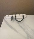 It makes organizing cables by the bedside much easier and blends in well without standing out. It’s a good, unobtrusive solution for cable management.