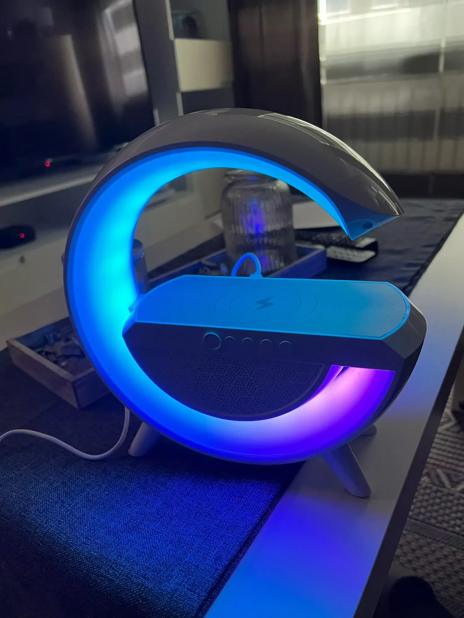 Dive into a world of convenience, style, and technology with our advanced Wireless Charging Stand. This isn’t just another charger – it’s an all-in-one powerhouse! Whether you’re looking to quickly power up your phone, set a mood with the RGB night light, or play your favorite tunes, this charging stand does it all. And the sleek, modern design ensures it will be a beautiful addition to any room or workspace.