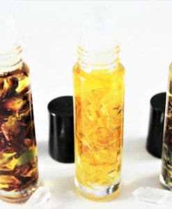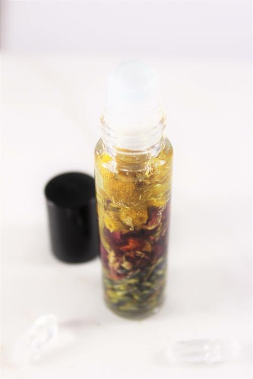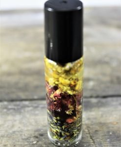 This Harmony blend is a wonderfully sultry and balanced blend. Made with a deep blend of vanilla absolut, lavender and patchouli suspended in organic jojoba oil which is the closest oil to our own natural sebum. This oil sinks in very quickly and will last a long time. With organic chamomile, rose petals and lavender flowers suspended in the oil, it’s not only beautiful but healing too!