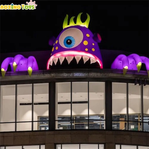 Make your house the center of attention this Halloween with our 3.5m Outdoor Giant LED Light Inflatable Roof Monster Cartoon! Available in purple or yellow, this playful yet spooky inflatable features a massive monster peeking over your roof or yard, creating a fun and eerie atmosphere for all ages. The built-in LED lights illuminate the monster at night, making it visible from afar and perfect for Halloween parties, trick-or-treaters, or just adding a festive touch to your home. Crafted from durable, weather-resistant material, this inflatable is designed for outdoor use and inflates quickly and easily with its built-in fan.