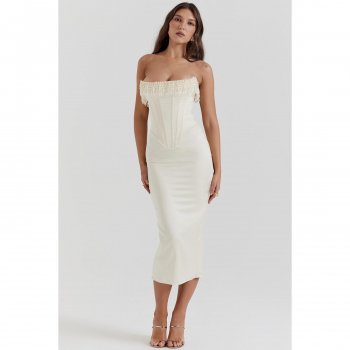 Step into the spotlight with the Pearl Tassel Off-Shoulder Midi Dress, a perfect blend of sophistication and allure. Designed for the fashion-forward woman, this dress is your ultimate go-to for parties, club nights, and any occasion where you want to make a lasting impression. The sleek satin fabric hugs your curves, while the strapless, backless design exudes confidence and elegance. Whether you’re dancing the night away or enjoying a romantic dinner, this dress ensures you do it in style.