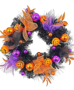 50cm Halloween Pumpkin Wreath For Front Door Jack-o-lantern Wreath