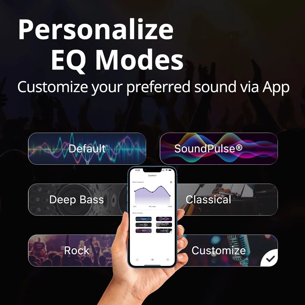 - Customize your audio experience with the dedicated app equalizer settings.