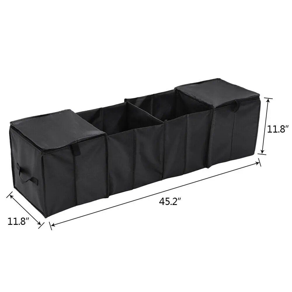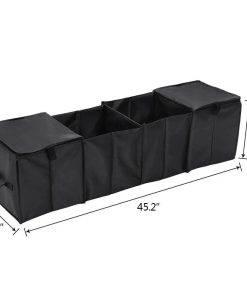 Setting up your new trunk organizer is a breeze. With dimensions of 46×12×12 inches when expanded and 12×4×12 inches when folded, it’s the perfect size for any car or SUV. The sleek black design is both stylish and practical, ensuring that it blends seamlessly with any car interior.