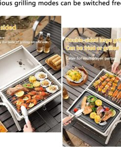 Our Portable Charcoal Grill stands out for its convenience, durability, and versatility. It’s perfect for all seasons – imagine grilling in summer under the shade or hosting a cozy BBQ party in winter. The double cooking area lets you cook more in less time, making it ideal for entertaining larger groups. Additionally, its smoke-free design ensures a more enjoyable and comfortable cooking experience. The attractive wooden handle and durable metal frame not only add to its functionality but also its aesthetic appeal.