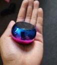 This little speaker has excellent sound quality considering its size. Pairing is a breeze, and the blue metallic color is a cool touch. I would definitely purchase this again.