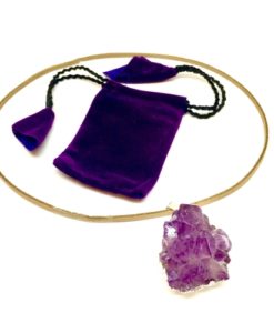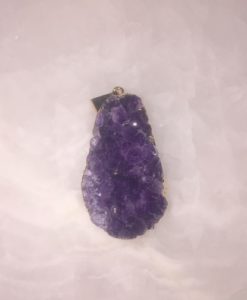 The Amethyst Cluster Pendants are gold metal plated and measure approximately 1.5″ to 2″ from the top of the swinging bail to the bottom of the pendant. They are all very unique since it is a natural stone and might differ in size, shape and color. The color goes from light to dark purple. These purple stones are the most well known crystals for carrying the violet flame healing vibration. They may assist you to let go of built up melancholy and depression based in the past, as well as helping to dissolve anger, fear and anxiety. This quartz crystal may also help with healing, sadness and grief, and will assist you to heal your inner child. It is a potent stone for spiritual healing and growth, and to aid you to beat addictions. This beautiful purple quartz crystal is one of the stones that embody the energy of the violet flame. More than any other crystal it will quiet the mind, allowing you to more easily make contact with the spirit.