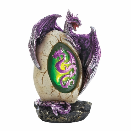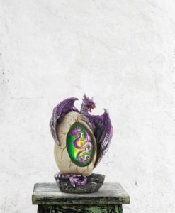 - This statue features metallic purple and silver accents with a light up LED egg that will be a statement piece in any room.