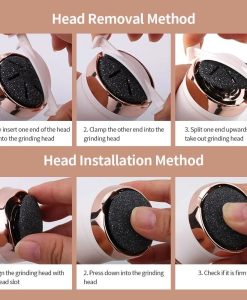 Please consider slight measurement deviations and color variations. Always prioritize safety by ensuring the grinding head is firmly installed. The Callus Remover is strictly for feet and heels; do not use it on other body parts.
