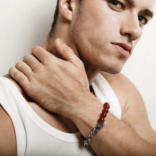 Tags: ACCESSORIES, Bracelet, Dragon, jewelry, mens bracelet, Red Agate, red bead