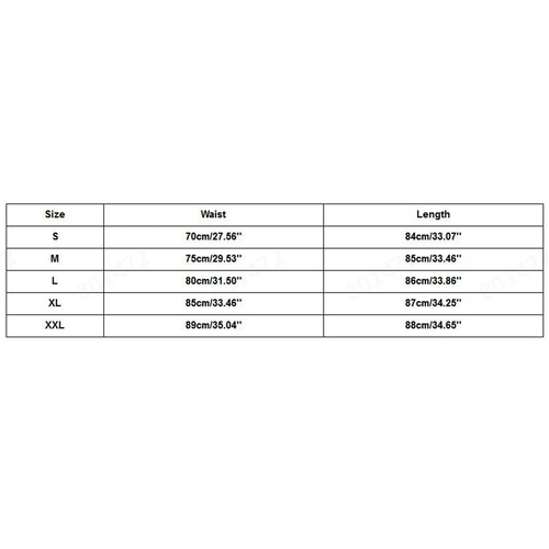 - XL: Waist 85cm/33.46″, Length 87cm/34.25″