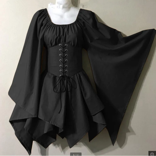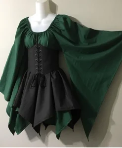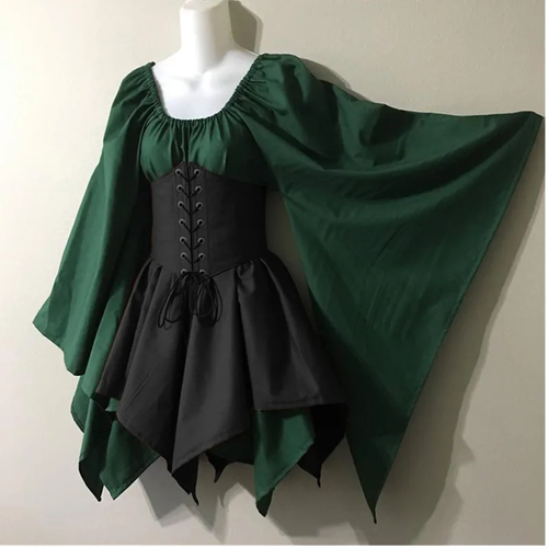 Step into a world of elegance with this Renaissance Vintage Dress, designed to capture the grandeur of Victorian and medieval fashion. Featuring flowing sleeves and a laced bodice, this dress offers a perfect blend of style and comfort, making it an ideal choice for Halloween cosplay, costume parties, or Renaissance fairs. The waist bandage design and splicing detail add a flattering touch, allowing you to showcase your waistline while maintaining a graceful silhouette.