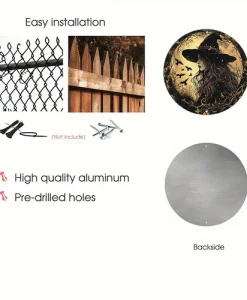 Add a mystical touch to your decor with this Round Metal Witch and Crows Sign, a versatile and stylish ornament perfect for enhancing the ambiance of any space.