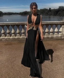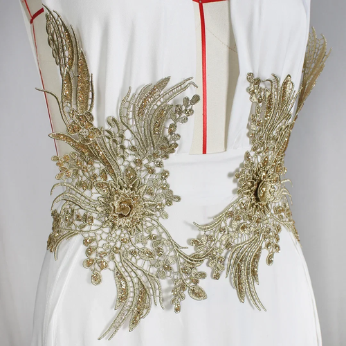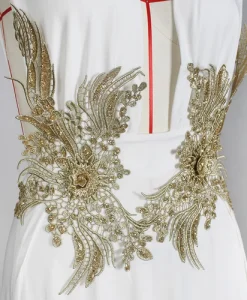 Transform into a fairy goddess with this floral appliqued Greek goddess dress, perfect for adding elegance and magic to your next event!