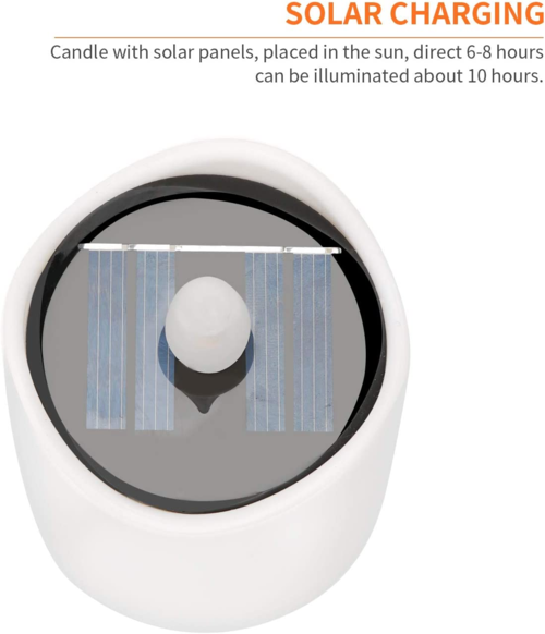 -Solar Power & Energy Saving & Waterproof — solar candle lamps are powered by solar panel, saving energy. Full charged for 10 hours can support work for 8 hours.