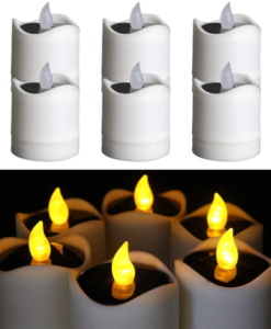 -Solar Candles Lights — This solar-powered candle set consists of six mini candles that shine like real candles. Powered by solar panels,Smoke-free, tasteless and environmentally friendly. This lamp is not bright enough for reading, only for decoration.