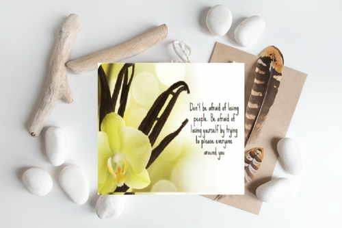 The Soul Talk Oracle Deck was created using a yellow flower on the back and the front is a yellow lily with the card meanings. This is a 48 card oracle deck.