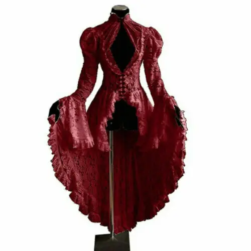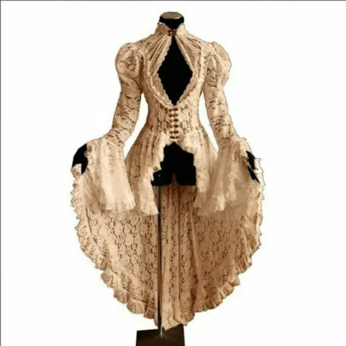 - Gothic and Renaissance Influence: Lace detailing and long skirt for an elegant, dramatic look.