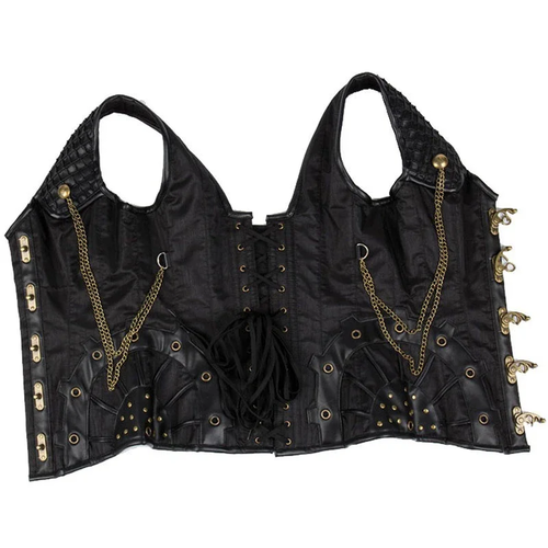 This Steampunk Corset Bustier Top is the ultimate statement piece for those seeking a bold, edgy look. Crafted from high-quality faux leather, this overbust corset is designed to provide a flattering silhouette while embracing the gothic steampunk aesthetic.