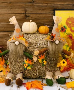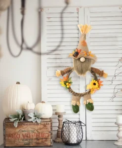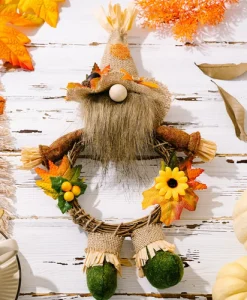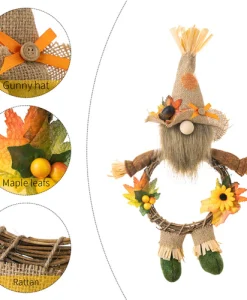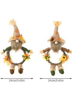 - Decorative Design: The wreath is adorned with artificial flowers, leaves, and a charming gnome, symbolizing the fall harvest and Thanksgiving spirit.