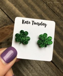 Glitter Acrylic St. Patties Day Clover Earrings 3 Leaf$16.55