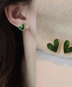 Elevate your fashion game with these Trendy Heart Bling Zircon Stud Earrings. A perfect blend of vintage charm and modern flair, these earrings are designed to accentuate your unique style. The dark green and gold color scheme adds a touch of sophistication, making them a must-have accessory for the fashion-conscious woman.