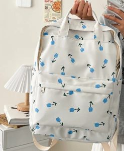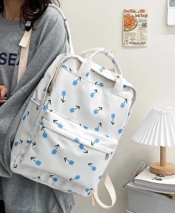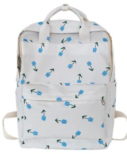What sets our Tulip Print Backpack apart is its unique blend of fashion and functionality. The chic tulip print brings a fresh, vibrant look, while the sturdy nylon material ensures durability. It’s not just a bag; it’s a reliable companion for your daily adventures.