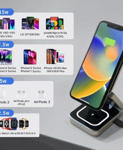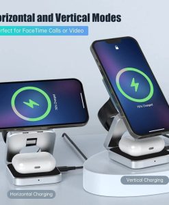 Discover the ultimate charging solution with our innovative 3-in-1 Foldable Magnetic Wireless Charger Stand. Designed to cater to the tech-savvy individual, this versatile charger is your one-stop solution for charging various devices simultaneously. Whether you’re an iPhone enthusiast, an Apple Watch user, or an AirPods aficionado, this charger stand seamlessly integrates into your daily life, making it a must-have accessory for your gadgets.