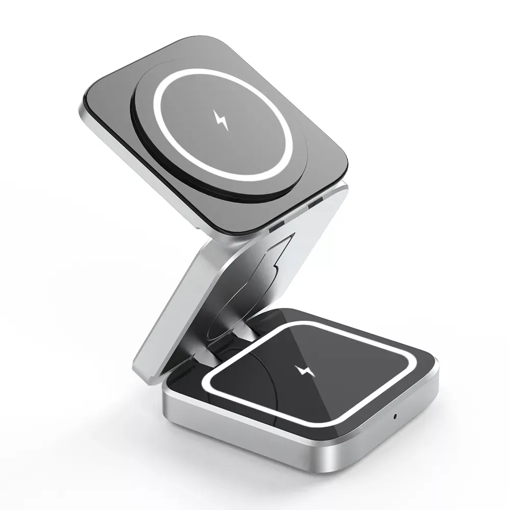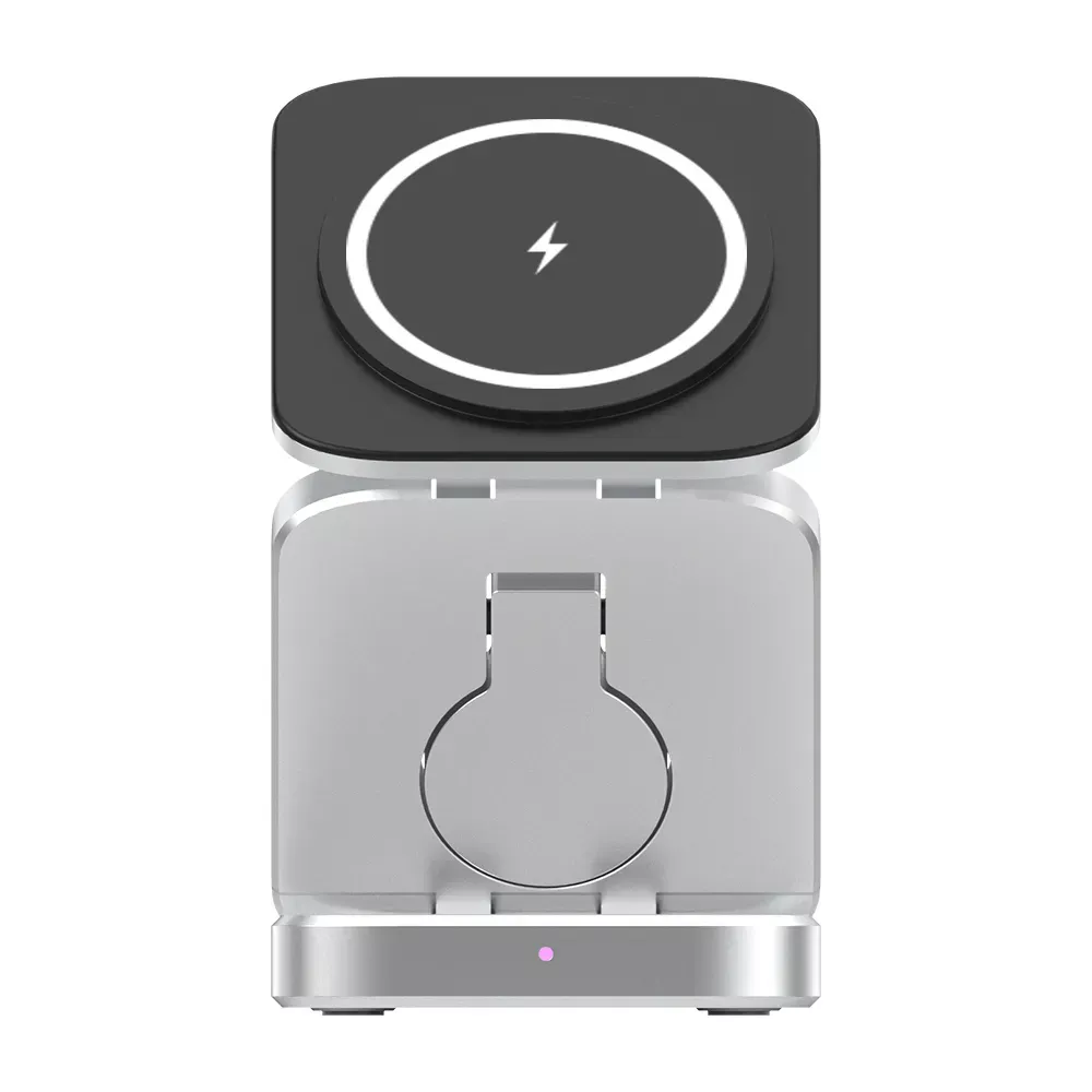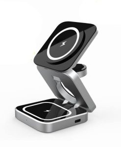 Discover the ultimate charging solution with our innovative 3-in-1 Foldable Magnetic Wireless Charger Stand. Designed to cater to the tech-savvy individual, this versatile charger is your one-stop solution for charging various devices simultaneously. Whether you’re an iPhone enthusiast, an Apple Watch user, or an AirPods aficionado, this charger stand seamlessly integrates into your daily life, making it a must-have accessory for your gadgets.