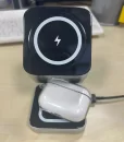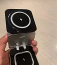 This charger is compact and great for travel. It charges my phone and watch effectively. The phone magnet is quite strong, ensuring the phone stays in place, while the watch magnet is a bit weaker. However, the design still secures the watch for charging. It’s not the fastest charger, but it’s efficient enough to charge a large iPhone overnight.