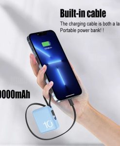 Stay charged and connected on the go with our sleek and mighty 10000mAh Power Bank. Designed for the modern lifestyle, this mini powerhouse fits right into your pocket or purse, ensuring you never run out of juice whether you’re navigating the urban jungles or on a wilderness adventure. Its integrated cables for both Apple and Android devices mean you can leave those tangled cords behind. Perfect for gamers, business travelers, and social butterflies who need their devices powered at all times!