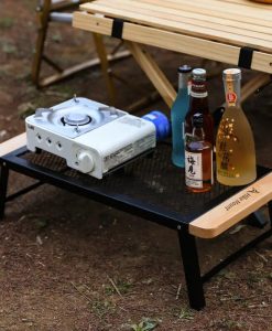 Our table is not just a piece of furniture; it’s a gateway to making the most of your outdoor activities. Use it as a reliable surface for your meals, a stable base for your camping gear, or a convenient spot for your belongings while you enjoy the nature around you. The solid wood and iron mesh materials ensure longevity and resistance to outdoor elements, making it a long-term companion for your adventures.