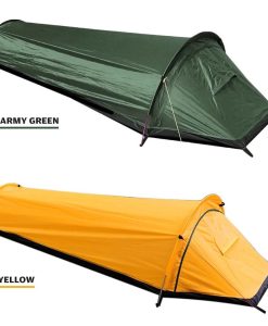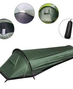 Model: Sleeping Bag Tent, for One Person. Canvas Fabric with a Straight Bracing Style. Dimensions: 220*90*50cm. Includes Aluminum Poles and is suitable for summer camping.